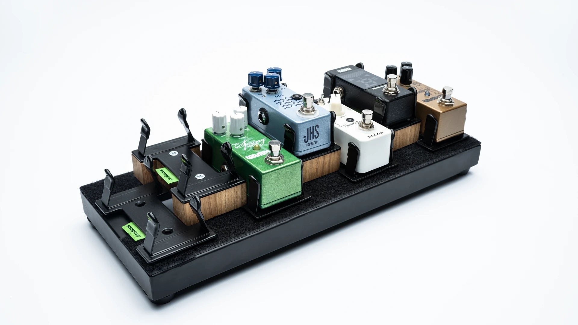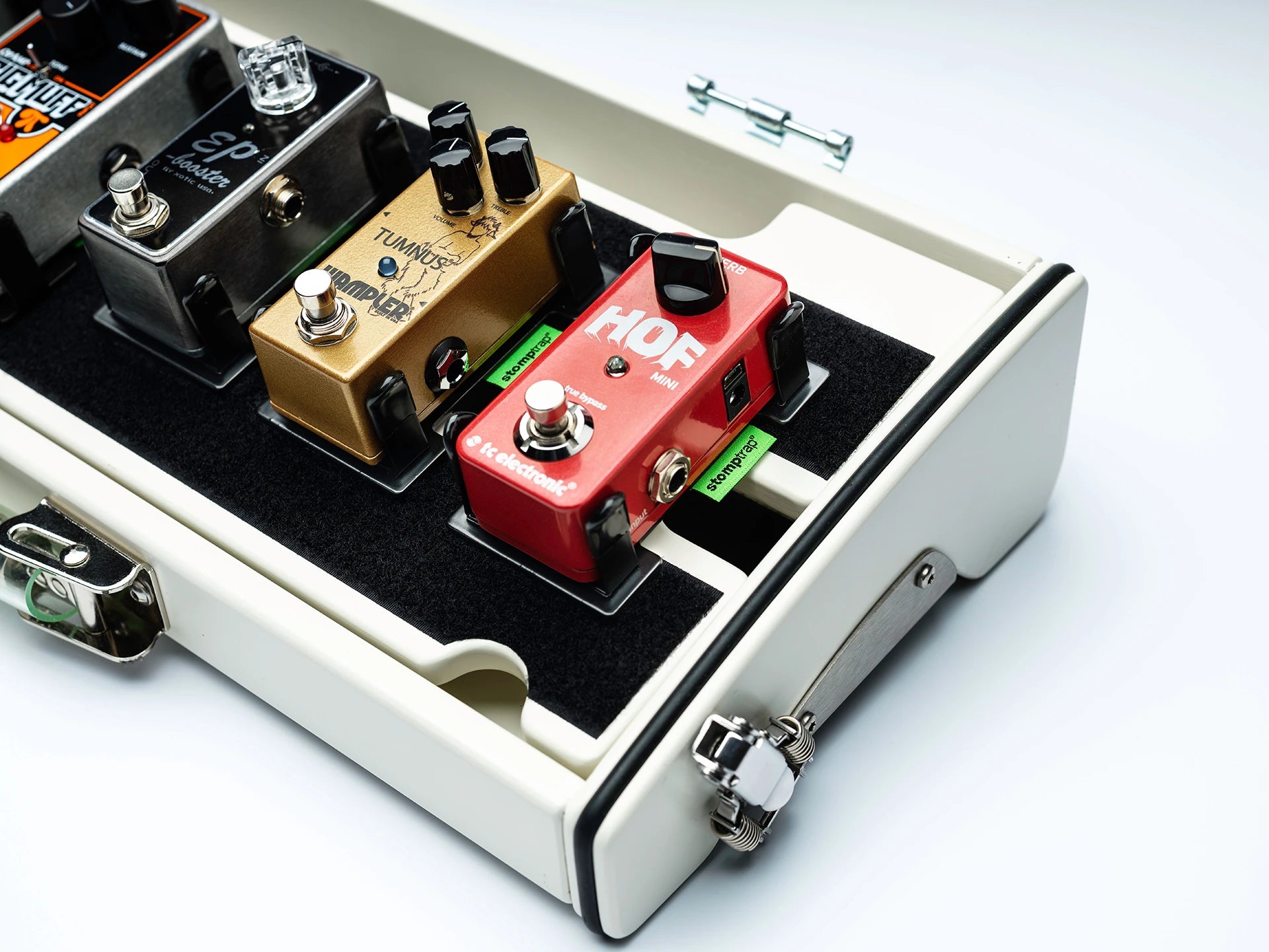 stomptrap® does not require any additional space on your pedalboard, as it only uses the space under the plugs.